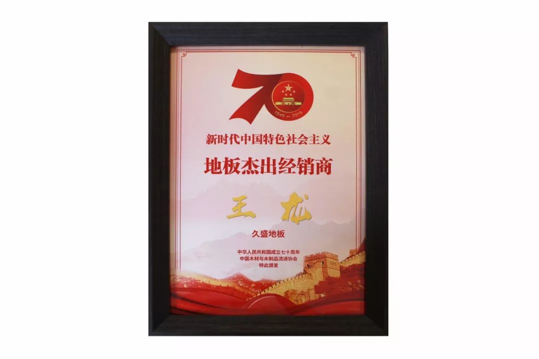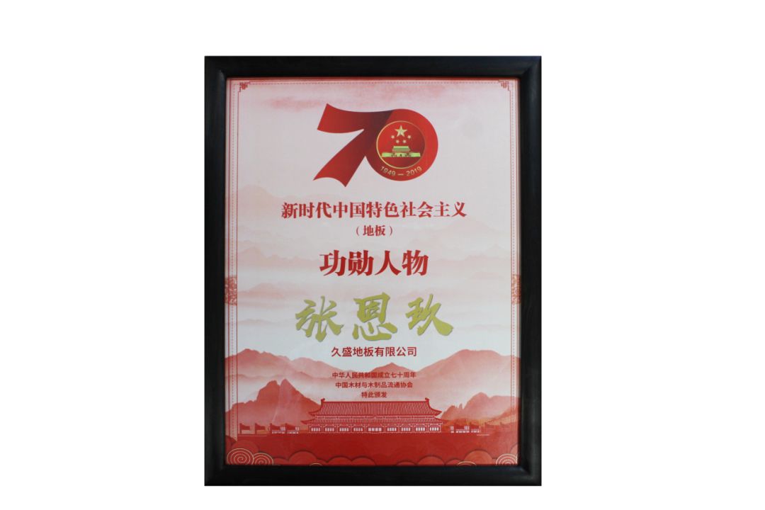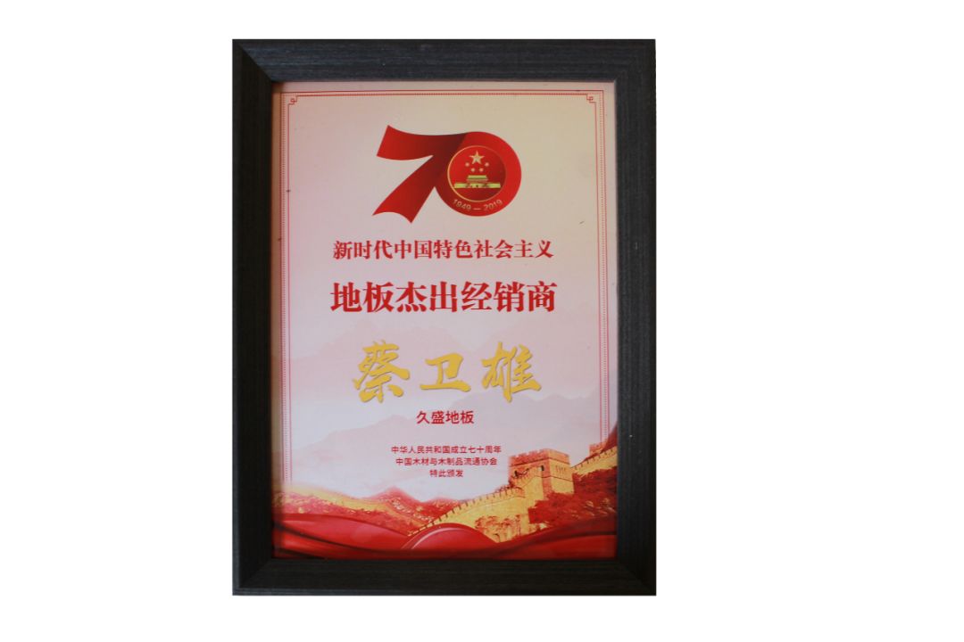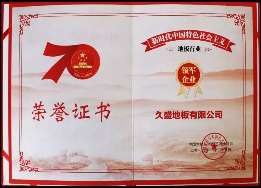 壯麗新時代七十年,專注行業(yè)十九載。在本次大會上,久盛地板榮獲由中國木材與木制品流通協(xié)會頒發(fā)的“新時代中國特色社會主義地板行業(yè)領(lǐng)軍企業(yè)”,該獎項旨在表彰為中國地板行業(yè)發(fā)展做出突出貢獻的企業(yè),傳承匠心精神,樹立行業(yè)典范,號召全行業(yè)與優(yōu)秀為伍,開創(chuàng)中國地板行業(yè)發(fā)展新局面。