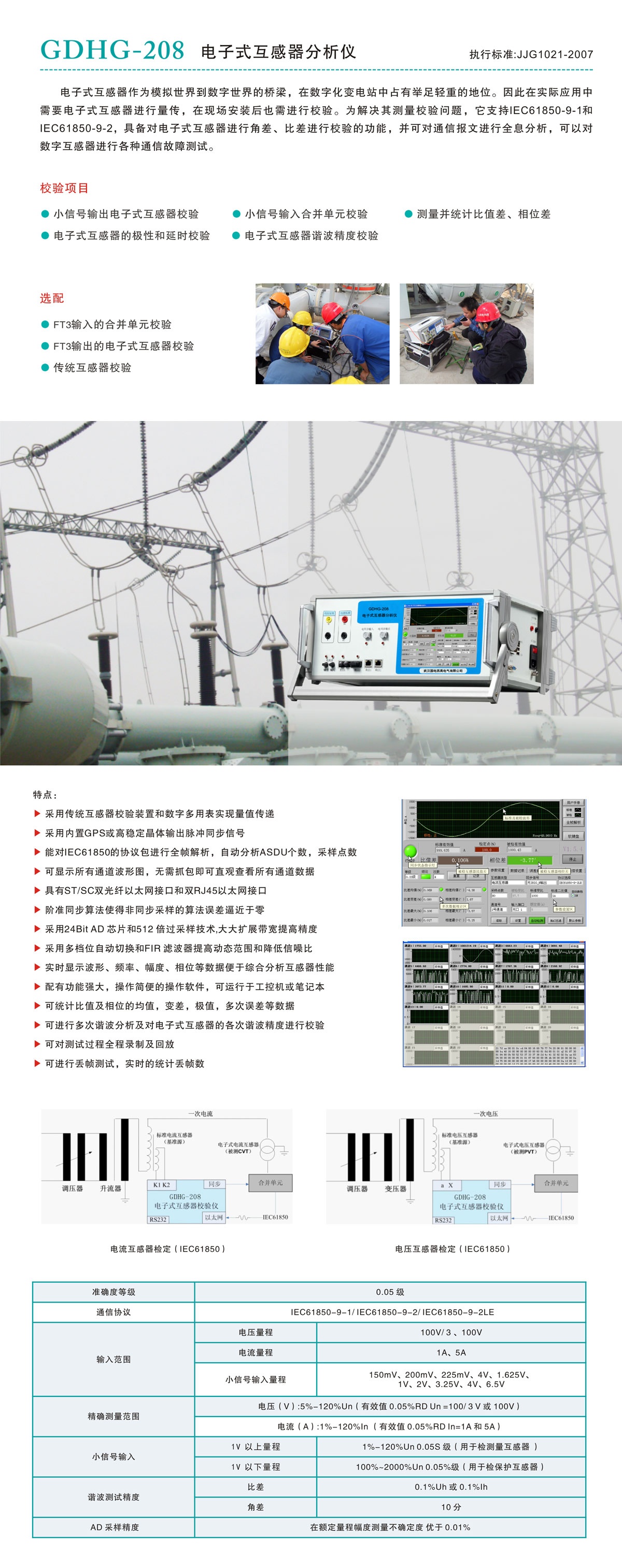 · 可進行多次諧波分析及對電子式互感器的各次諧波精度進行校驗;