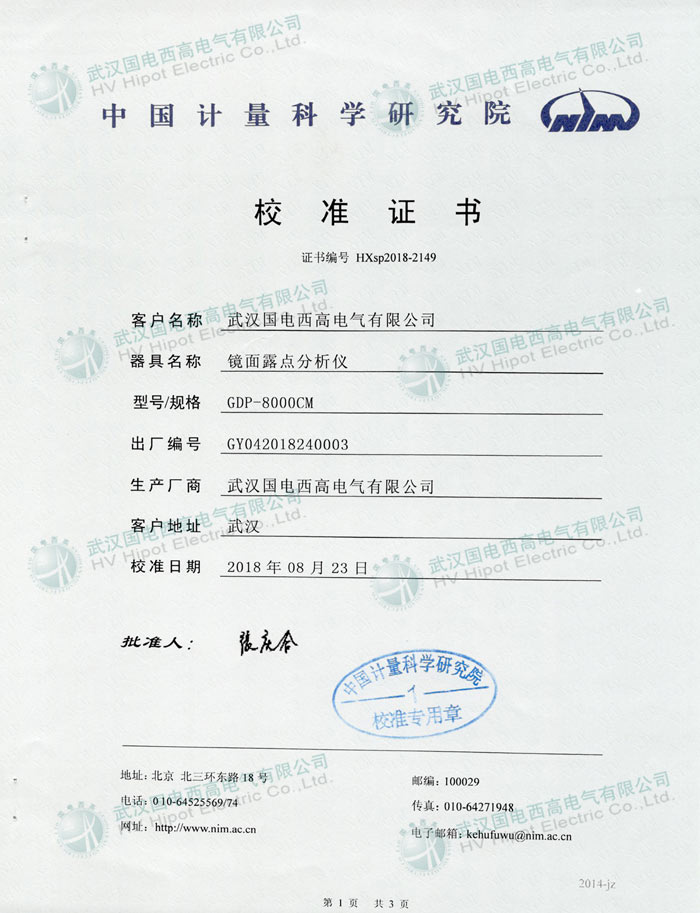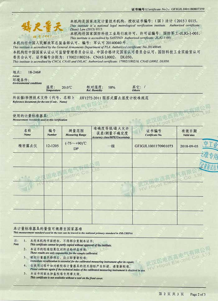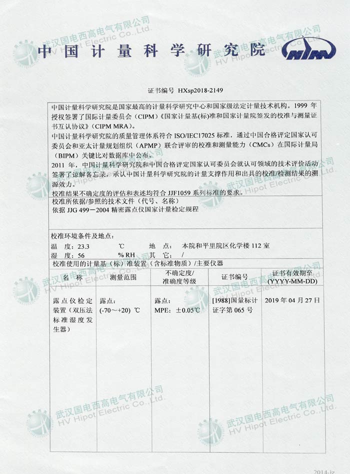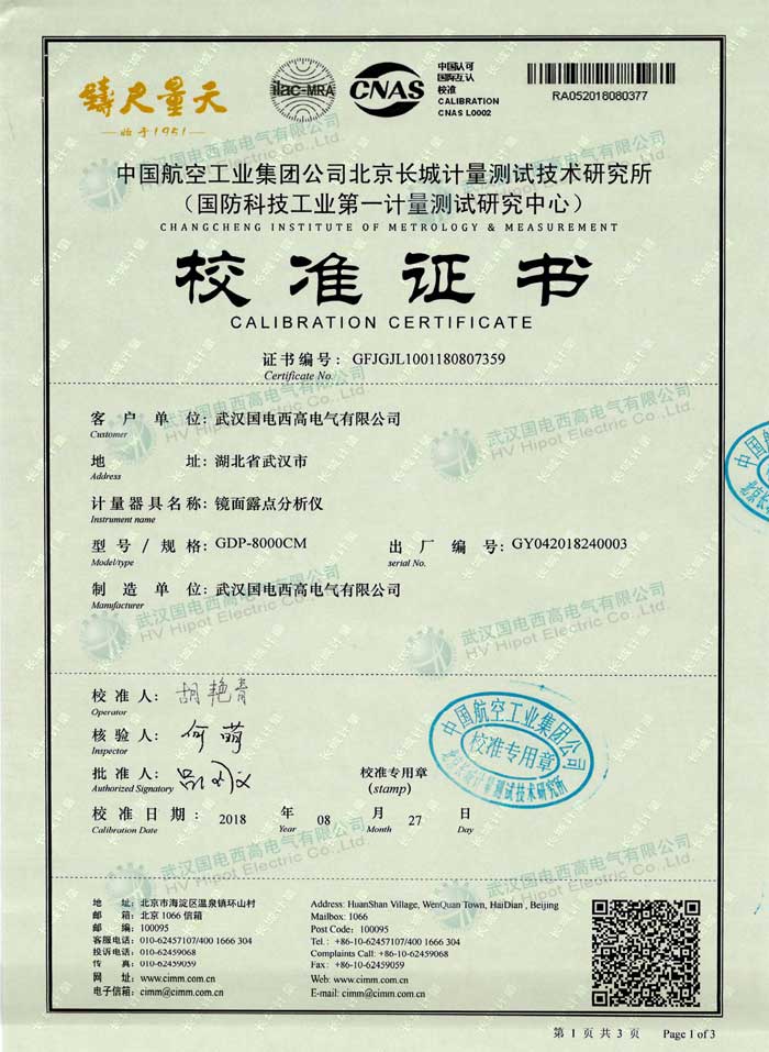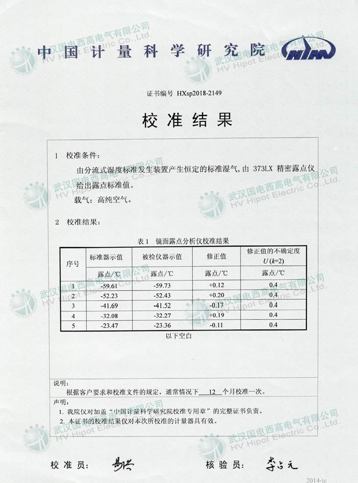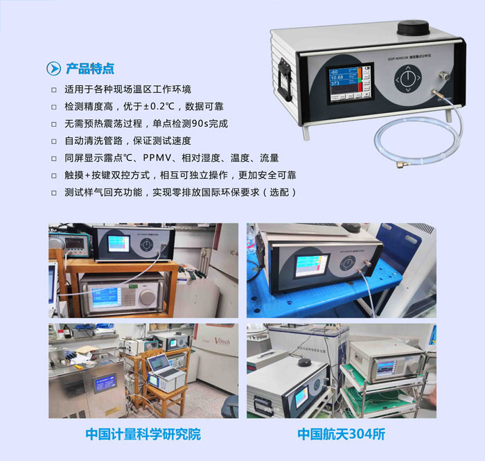 其中,GDP-8000CM型便攜式冷鏡法SF6氣體露點(diǎn)儀通過國家一級計(jì)量院“中國計(jì)量科學(xué)研究院”“中國航空304所”檢測,精度優(yōu)于±0.2℃。