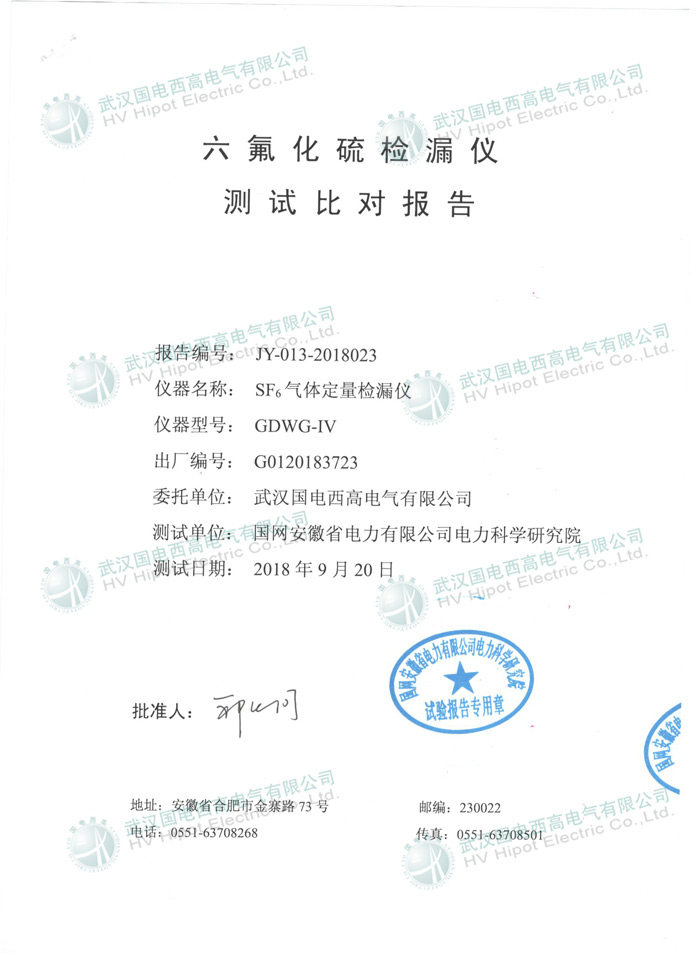 GDWG-IV型SF6氣體定量檢漏儀,則是通過了安徽省電力科學(xué)研究院(國家電網(wǎng)SF6氣體實(shí)驗(yàn)室)氣體濃度檢測。相比較國內(nèi)其他廠家,我公司產(chǎn)品有著檢測速度快,檢測數(shù)據(jù)穩(wěn)定,準(zhǔn)確的優(yōu)點(diǎn)。得到了安徽院專家的認(rèn)可。