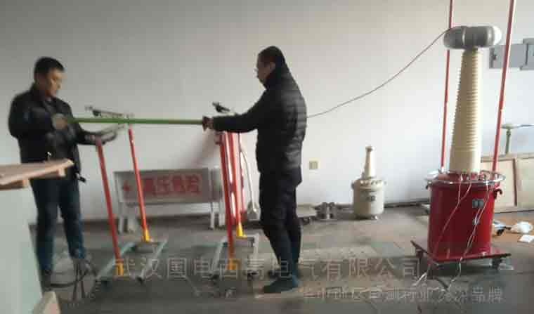 對(duì)于YDQ-30/200六氟化硫(SF6)充氣式試驗(yàn)變壓器和GDYD-D-30/400耐壓控制臺(tái)的試驗(yàn),試驗(yàn)前的準(zhǔn)備工作有,第一步,先按試驗(yàn)要求將控制箱、變壓器、被試品正確接好線;第二步,根據(jù)試驗(yàn)的要求,整定“時(shí)間繼電器”及“過(guò)流繼電器”;第三步,接入電源,“電源指示燈”亮,表示外部電源已引入;第四步,按“啟動(dòng)按鈕”,“電源指示燈”和“零位指示燈”“報(bào)警燈”亮;進(jìn)入送電狀態(tài)并有語(yǔ)言提醒“有電危險(xiǎn)、請(qǐng)勿靠近”。隨后正式開(kāi)始試驗(yàn)。